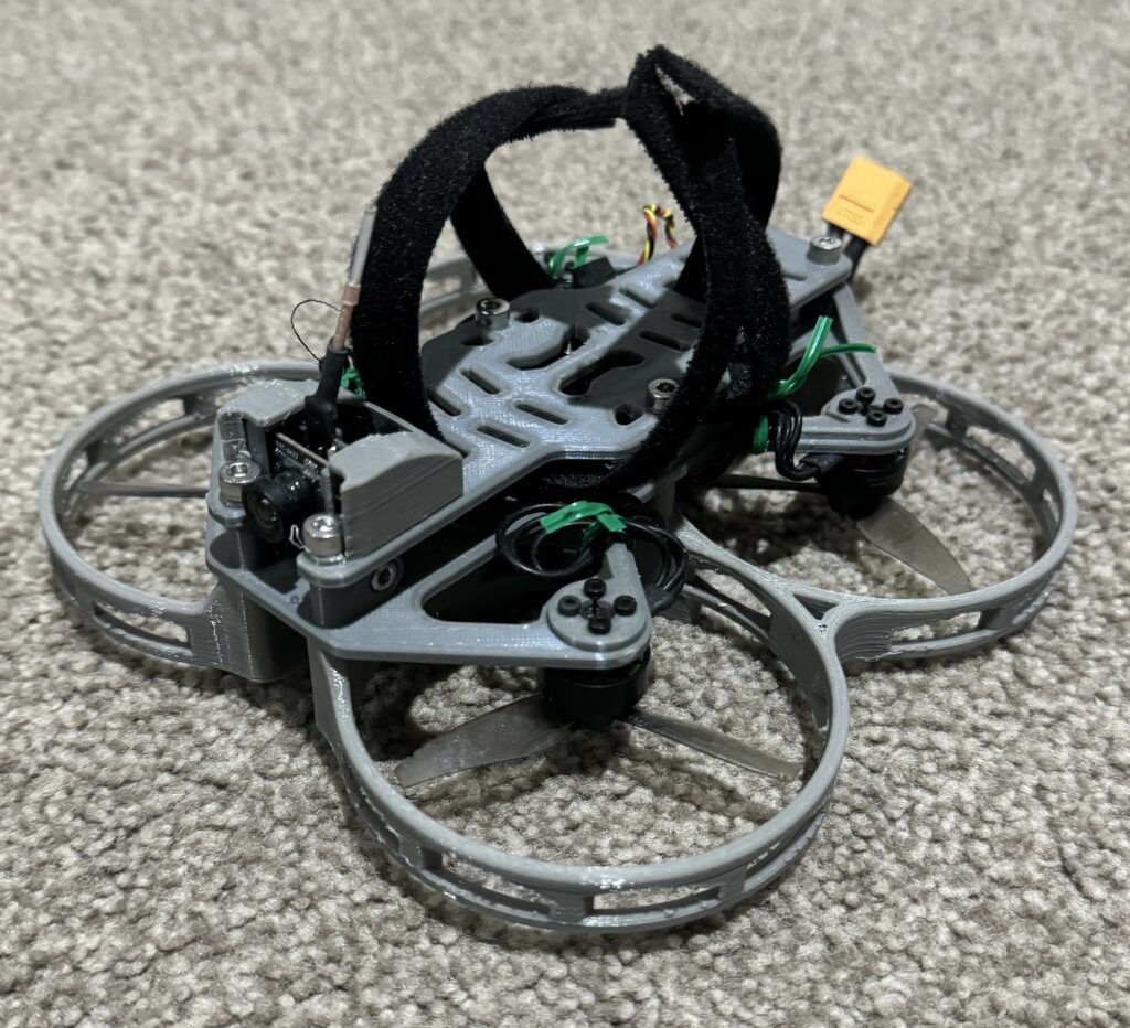 With no prior experience with drones, this project initially involved extensive research on how they operated and what components were needed. Many new skills were learnt throughout the build process too, such as CAD modelling for 3D printing, soldering, and operating a 3D printer. A large amount of testing was involved, and many failures, crashes and troubleshooting often followed. The images below show the different drone iterations throughout the length of the project, as well as other notable components.